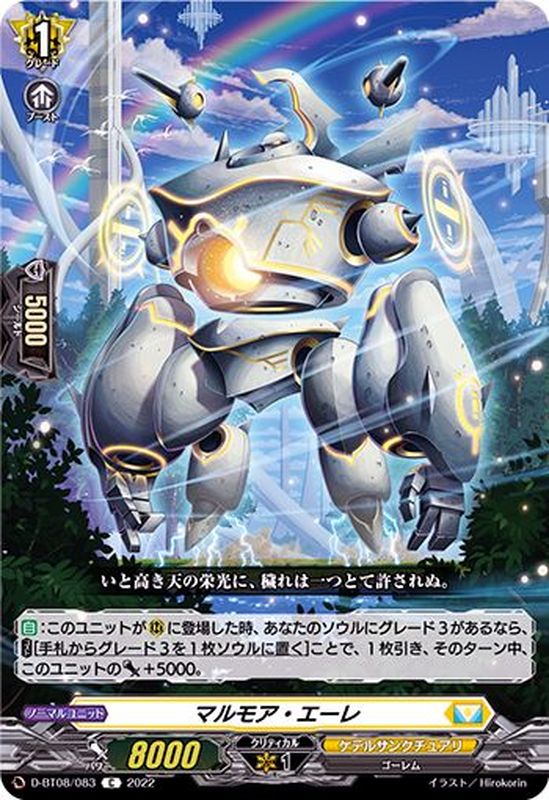 【自】:このユニットが(R)に登場した時、あなたのソウルにグレード3があるなら、【コスト】[手札からグレード3を1枚ソウルに置く]ことで、1枚引き、そのターン中、このユニットのパワー+5000。