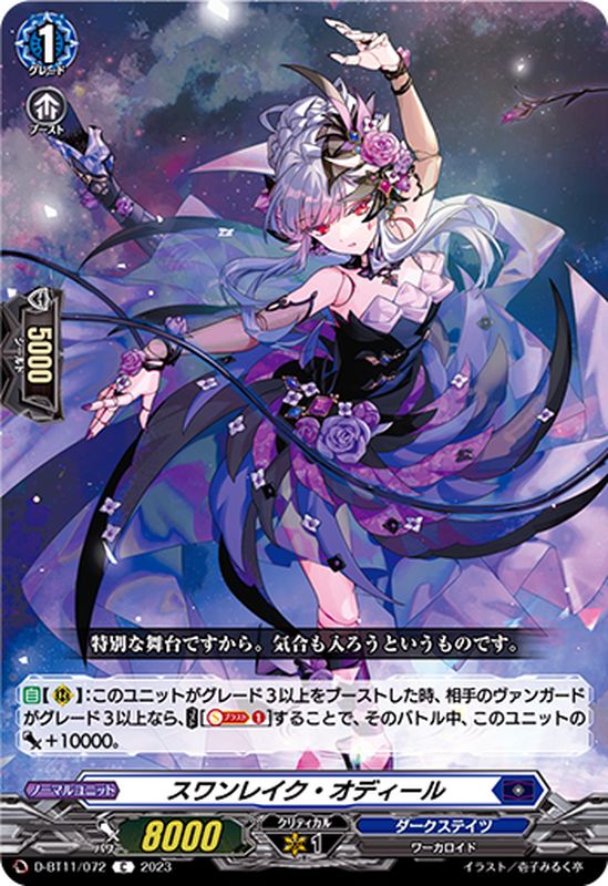 【自】【(R)】:このユニットがグレード3以上をブーストした時、相手のヴァンガードがグレード3以上なら、【コスト】[【ソウルブラスト】(1)]することで、そのバトル中、このユニットのパワー+10000。