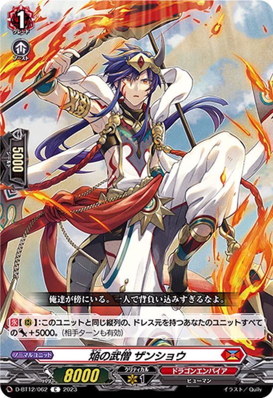 【永】【(R)】:このユニットと同じ縦列の、ドレス元を持つあなたのユニットすべてのパワー+5000。(相手ターンも有効)