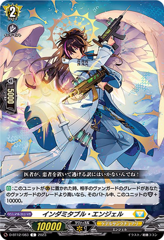 【自】:このユニットが(G)に置かれた時、相手のヴァンガードのグレードがあなたのヴァンガードのグレードより高いなら、そのバトル中、このユニットのシールド+10000。