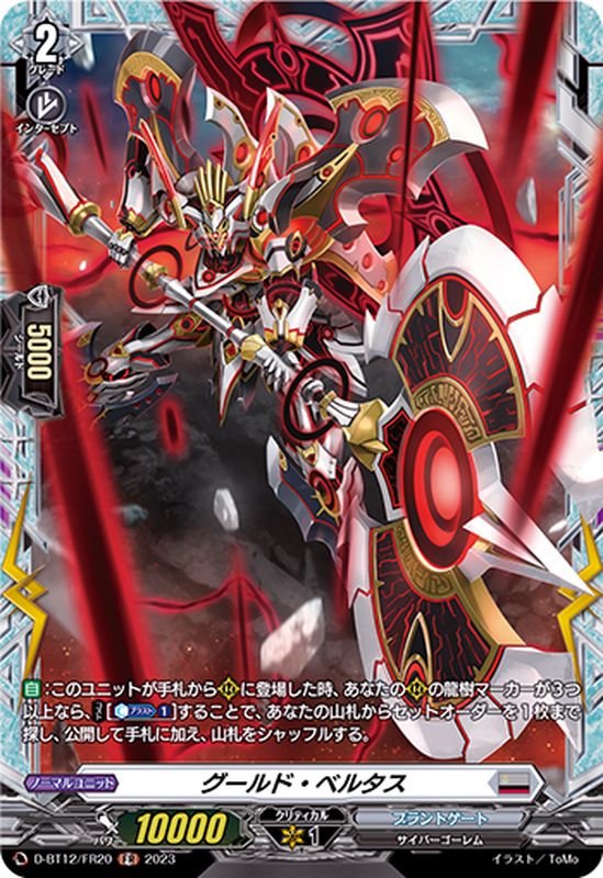 【自】:このユニットが手札から(R)に登場した時、あなたの(R)の龍樹マーカーが3つ以上なら、【コスト】[【カウンターブラスト】(1)]することで、あなたの山札からセットオーダーを1枚まで探し、公開して手札に加え、山札をシャッフルする。