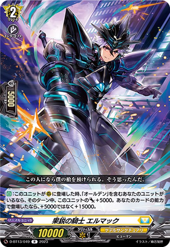 【自】:このユニットが(R)に登場した時、「オールデン」を含むあなたのユニットがいるなら、そのターン中、このユニットのパワー+5000。あなたのカードの能力で登場したなら、+5000ではなく+15000。