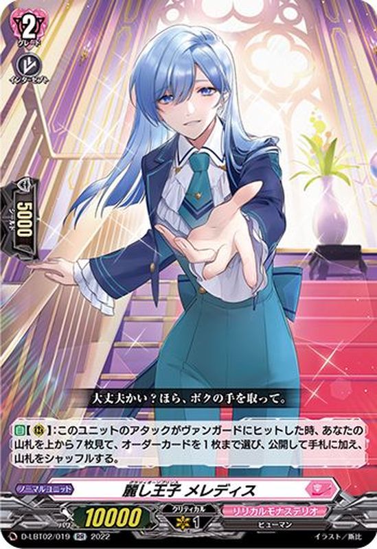 【自】【(R)】:このユニットのアタックがヴァンガードにヒットした時、あなたの山札を上から7枚見て、オーダーカードを1枚まで選び、公開して手札に加え、山札をシャッフルする。