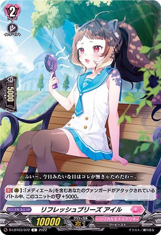 【永】【(G)】:「メディエール」を含むあなたのヴァンガードがアタックされているバトル中、このユニットのシールド+5000。