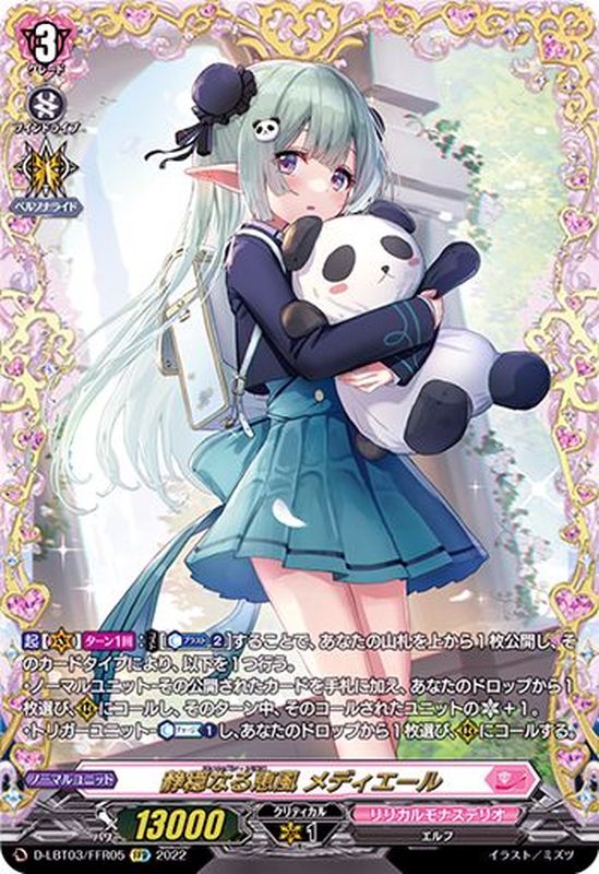 【起】【(V)】【ターン1回】:【コスト】[【カウンターブラスト】(2)]することで、あなたの山札を上から1枚公開し、そのカードタイプにより、以下を1つ行う。・ノーマルユニット-その公開されたカードを手札に加え、あなたのドロップから1枚選び、(R)にコールし、そのターン中、そのコールされたユニットのクリティカル+1。・トリガーユニット-【カウンターチャージ】(1)し、あなたのドロップから1枚選び、(R)にコールする。