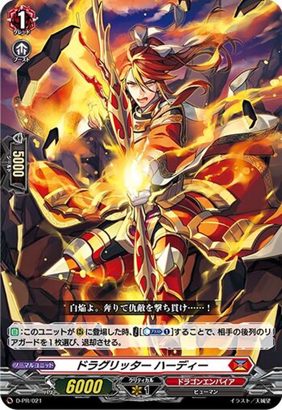 【自】:このユニットが(R)に登場した時、【コスト】[【カウンターブラスト】(1)]することで、相手の後列のリアガードを1枚選び、退却させる。