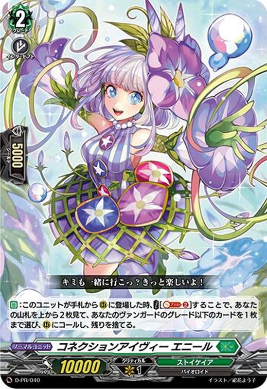 【自】:このユニットが手札から(R)に登場した時、【コスト】[【ソウルブラスト】(2)]することで、あなたの山札を上から2枚見て、あなたのヴァンガードのグレード以下のカードを1枚まで選び、(R)にコールし、残りを捨てる。