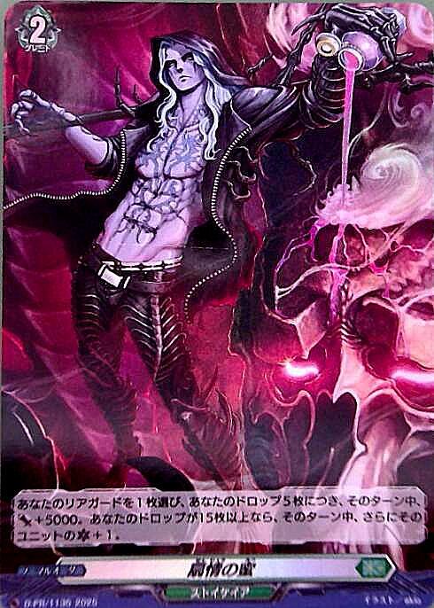 あなたのリアガードを1枚選び、あなたのドロップ5枚につき、そのターン中、パワー+5000。あなたのドロップが15枚以上なら、そのターン中、さらにそのユニットのクリティカル+1。