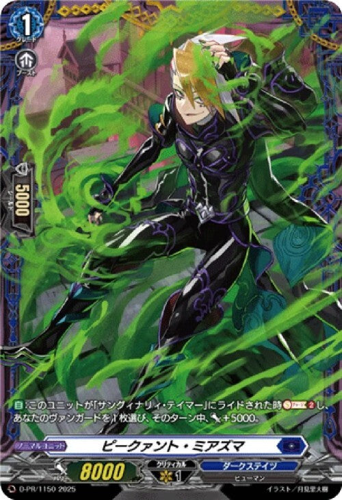 【自】:このユニットが「サングィナリィ・テイマー」にライドされた時【ソウルチャージ】(2)し、あなたのヴァンガードを1枚選び、そのターン中、パワー+5000。