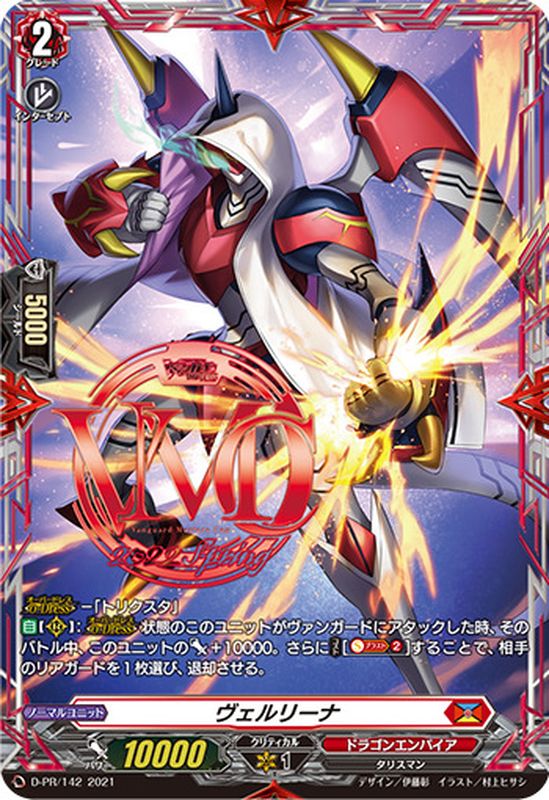 【オーバードレス】-「トリクスタ」【自】【(R)】:【オーバードレス】状態のこのユニットがヴァンガードにアタックした時、そのバトル中、このユニットのパワー+10000。さらに【コスト】[【ソウルブラスト】(2)]することで、相手のリアガードを1枚選び、退却させる。