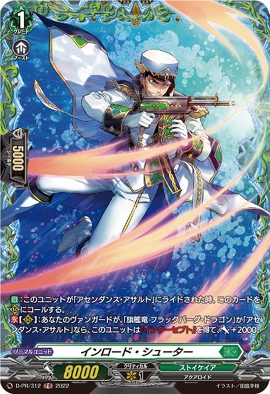 【自】:このユニットが「アセンダンス・アサルト」にライドされた時、このカードを(R)にコールする。【永】【(R)】:あなたのヴァンガードが、「旗艦竜 フラッグバーグ・ドラゴン」か「アセンダンス・アサルト」なら、このユニットは『インターセプト』を得て、パワー+2000。