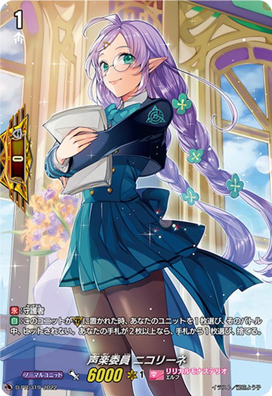 【永】:守護者【自】:このユニットが(G)に置かれた時、あなたのユニットを1枚選び、そのバトル中、ヒットされない。あなたの手札が2枚以上なら、手札から1枚選び、捨てる。