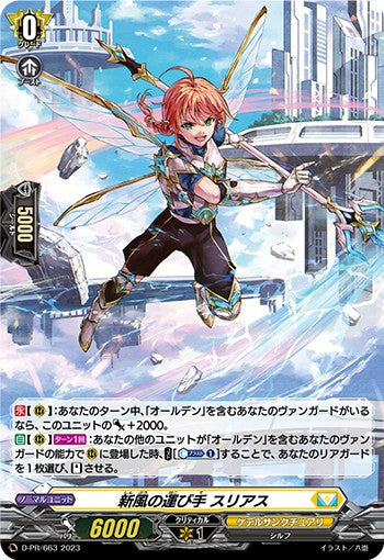 【永】【(R)】:あなたのターン中、「オールデン」を含むあなたのヴァンガードがいるなら、このユニットのパワー+2000。【自】【(R)】【ターン1回】:あなたの他のユニットが「オールデン」を含むあなたのヴァンガードの能力で(R)に登場した時、【コスト】[【カウンターブラスト】(1)]することで、あなたのリアガードを1枚選び、【スタンド】させる。