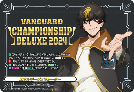【自】【ライドデッキ】:あなたがライドした時、このカードをクレストゾーンに置き、あなたが後攻なら、【エネルギーチャージ】(3)。【永】:あなたはエネルギーを10個まで持てる。【自】:あなたのライドフェイズ開始時、【エネルギーチャージ】(3)。【起】【ターン1回】:【コスト】[【エネルギーブラスト】(7)]することで、1枚引く。
