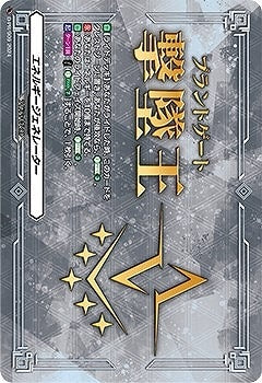 【自】【ライドデッキ】:あなたがライドした時、このカードをクレストゾーンに置き、あなたが後攻なら、【エネルギーチャージ】(3)。【永】:あなたはエネルギーを10個まで持てる。【自】:あなたのライドフェイズ開始時、【エネルギーチャージ】(3)。【起】【ターン1回】:【コスト】[【エネルギーブラスト】(7)]することで、1枚引く。