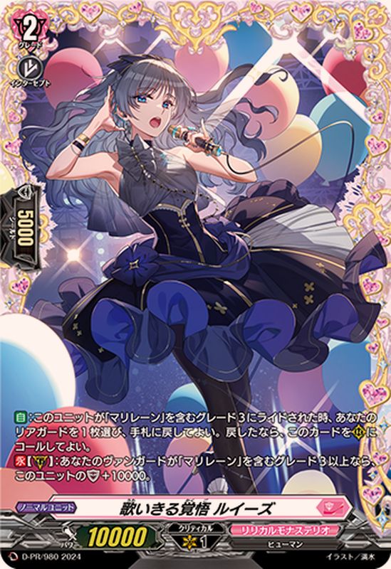 【自】:このユニットが「マリレーン」を含むグレード3にライドされた時、あなたのリアガードを1枚選び、手札に戻してよい。戻したなら、このカードを(R)にコールしてよい。【永】【(G)】:あなたのヴァンガードが「マリレーン」を含むグレード3以上なら、このユニットのシールド+10000。