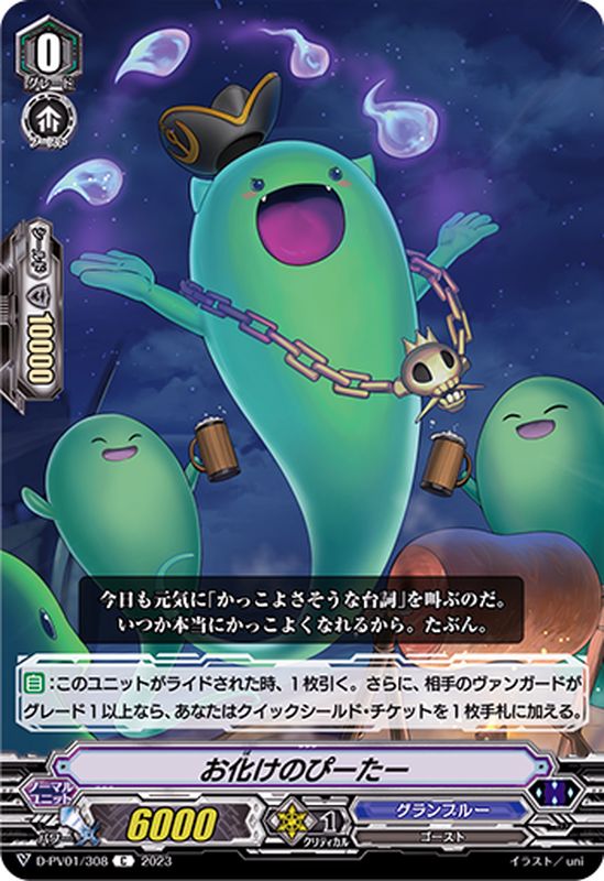 【自】:このユニットがライドされた時、1枚引く。さらに、相手のヴァンガードがグレード1以上なら、あなたはクイックシールド・チケットを1枚手札に加える。