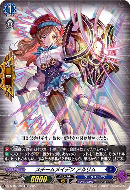 【永】:守護者(守護者を持つカードはデッキに合計4枚まで入れられる)【自】:このユニットが(G)に置かれた時、あなたのユニットを1枚選び、そのバトル中、ヒットされない。あなたの手札が2枚以上なら、手札から1枚選び、捨てる。