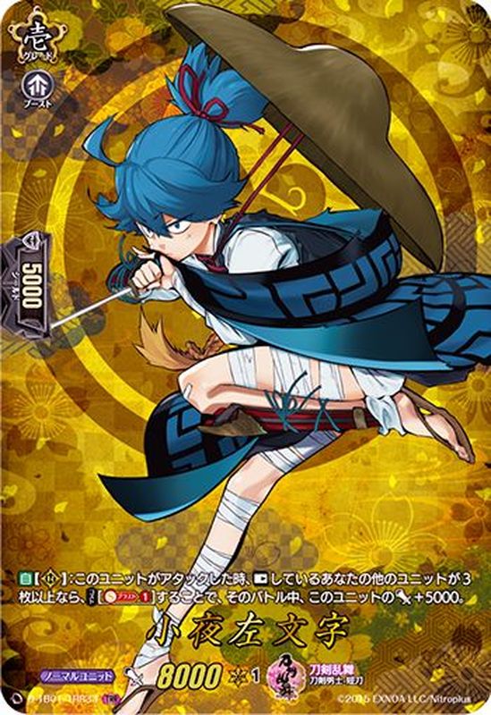 【自】【(R)】:このユニットがアタックした時、【レスト】しているあなたの他のユニットが3枚以上なら、【コスト】[【ソウルブラスト】(1)]することで、そのバトル中、このユニットのパワー+5000。