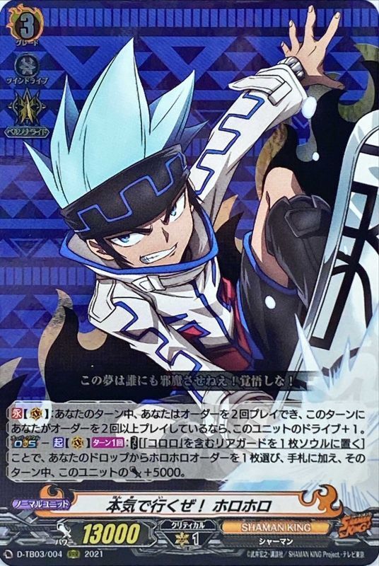 【永】【(V)】:あなたのターン中、あなたはオーダーを2回プレイでき、このターンにあなたがオーダーを2回以上プレイしているなら、このユニットのドライブ+1。【オーバーソウル】-【起】【(V)】【ターン1回】:【コスト】[「コロロ」を含むリアガードを1枚ソウルに置く]ことで、あなたのドロップからホロホロオーダーを1枚選び、手札に加え、そのターン中、このユニットのパワー+5000。