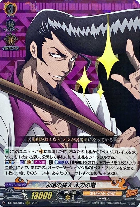 【自】:このユニットが(V)に登場した時、あなたの山札から「ベストプレイスを求めて」を1枚まで探し、公開して手札に加え、山札をシャッフルする。【オーバーソウル】-【起】【(V)】【ターン1回】:【コスト】[【カウンターブラスト】(1),「蜥蜴郎」を含むリアガードを1枚ソウルに置く]ことで、あなたの、オーダーゾーンとソウルの「ベストプレイスを求めて」1枚につき、そのターン中、あなたのユニットすべてのパワー+5000。