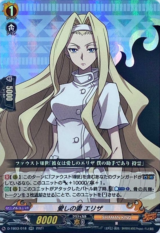 【永】【(R)】:このターンに「ファウストⅧ世」を含むあなたのヴァンガードが【オーバーソウル】しているなら、このユニットのパワー+10000/クリティカル+1。【自】【(R)】:このユニットがアタックしたバトル終了時、【コスト】[【カウンターブラスト】(1),骨の兵隊・トークンを3枚退却させる]ことで、このユニットを【スタンド】させる。