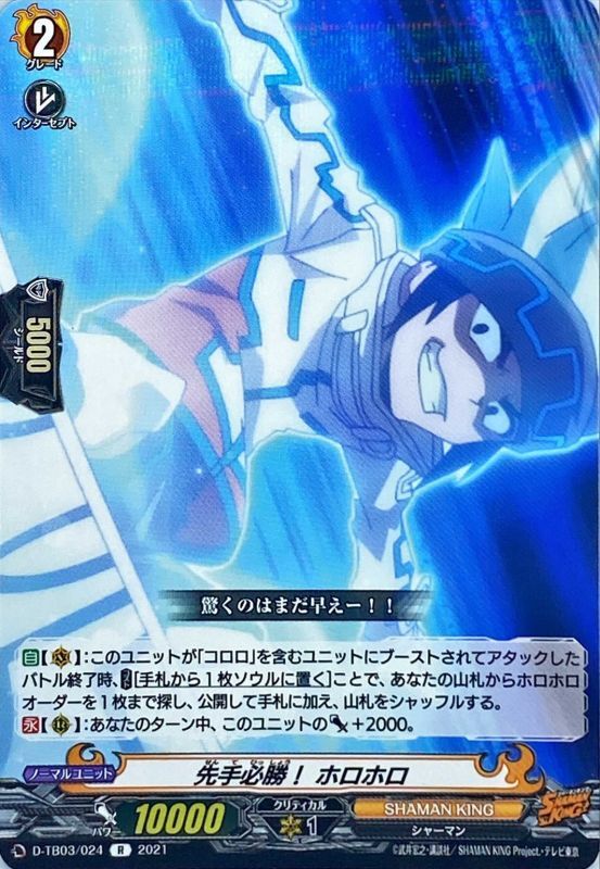 【自】【(V)】:このユニットが「コロロ」を含むユニットにブーストされてアタックしたバトル終了時、【コスト】[手札から1枚ソウルに置く]ことで、あなたの山札からホロホロオーダーを1枚まで探し、公開して手札に加え、山札をシャッフルする。【永】【(R)】:あなたのターン中、このユニットのパワー+2000。