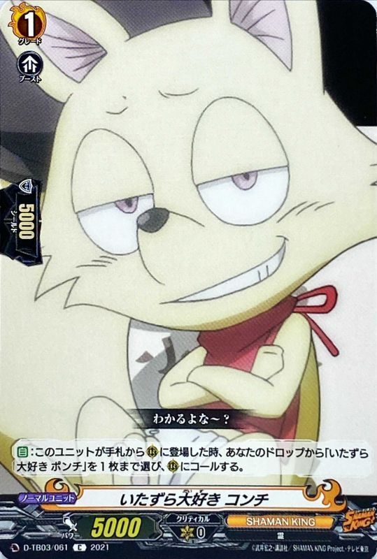 【自】:このユニットが手札から(R)に登場した時、あなたのドロップから「いたずら大好き ポンチ」を1枚まで選び、(R)にコールする。
