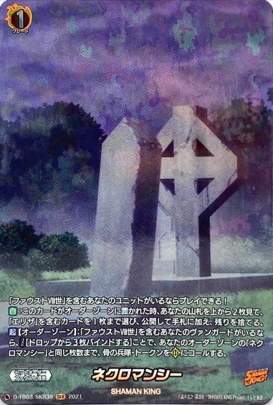 (セットオーダーはプレイ後、オーダーゾーンに置く)「ファウストⅧ世」を含むあなたのユニットがいるならプレイできる!【自】:このカードがオーダーゾーンに置かれた時、あなたの山札を上から2枚見て、「エリザ」を含むカードを1枚まで選び、公開して手札に加え、残りを捨てる。【起】【オーダーゾーン】:「ファウストⅧ世」を含むあなたのヴァンガードがいるなら、【コスト】[ドロップから3枚バインドする]ことで、あなたのオーダーゾーンの「ネクロマンシー」と同じ枚数まで、骨の兵隊・トークンを(R)にコールする。