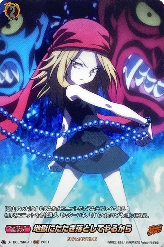 「恐山アンナ」を含むあなたのユニットがいるならプレイできる!相手のユニットを2枚選び、そのターン中、それらの元々のパワーは0になる。