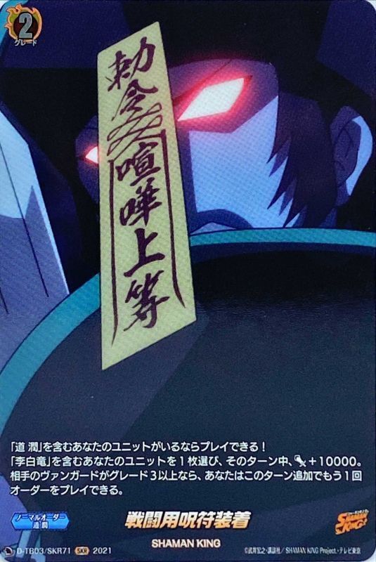 「道 潤」を含むあなたのユニットがいるならプレイできる!「李白竜」を含むあなたのユニットを1枚選び、そのターン中、パワー+10000。相手のヴァンガードがグレード3以上なら、あなたはこのターン追加でもう1回オーダーをプレイできる。