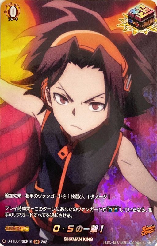 追加効果-相手のヴァンガードを1枚選び、1ダメージ!プレイ時効果-このターンにあなたのヴァンガードが【オーバーソウル】しているなら、相手のリアガードすべてを退却させる。