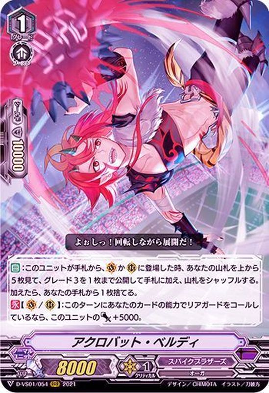 【自】:このユニットが手札から、(V)か(R)に登場した時、あなたの山札を上から5枚見て、グレード3を1枚まで公開して手札に加え、山札をシャッフルする。加えたら、あなたの手札から1枚捨てる。【永】【(V)/(R)】:このターンにあなたのカードの能力でリアガードをコールしているなら、このユニットのパワー+5000。