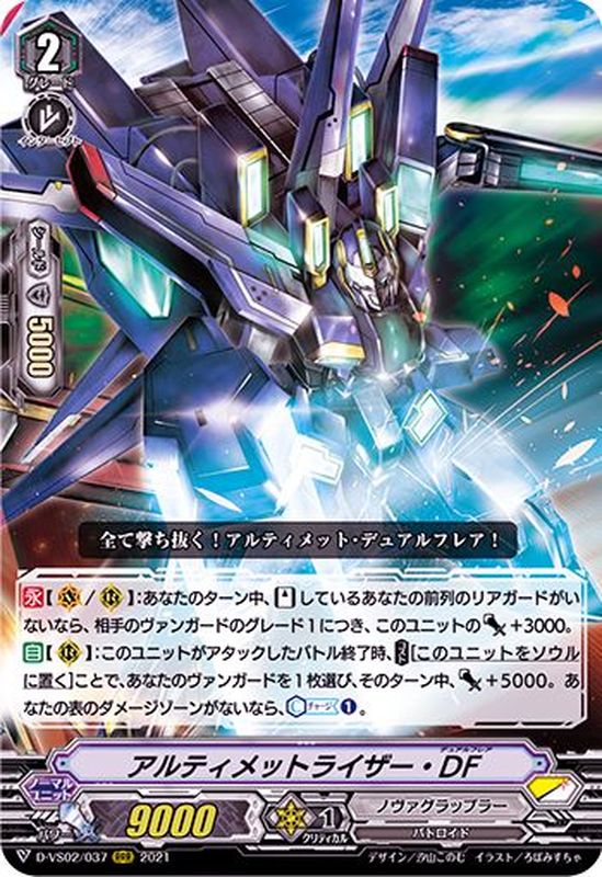 【永】【(V)/(R)】:あなたのターン中、【スタンド】しているあなたの前列のリアガードがいないなら、相手のヴァンガードのグレード1につき、このユニットのパワー+3000。【自】【(R)】:このユニットがアタックしたバトル終了時、【コスト】[このユニットをソウルに置く]ことで、あなたのヴァンガードを1枚選び、そのターン中、パワー+5000。あなたの表のダメージゾーンがないなら、【カウンターチャージ】(1)。