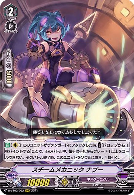 【自】【(R)】:このユニットがヴァンガードにアタックした時、【コスト】[ドロップから1枚バインドする]ことで、そのバトル中、相手は手札からグレード1以上をコールできない。そのバトル終了時、このユニットをソウルに置き、1枚引く。