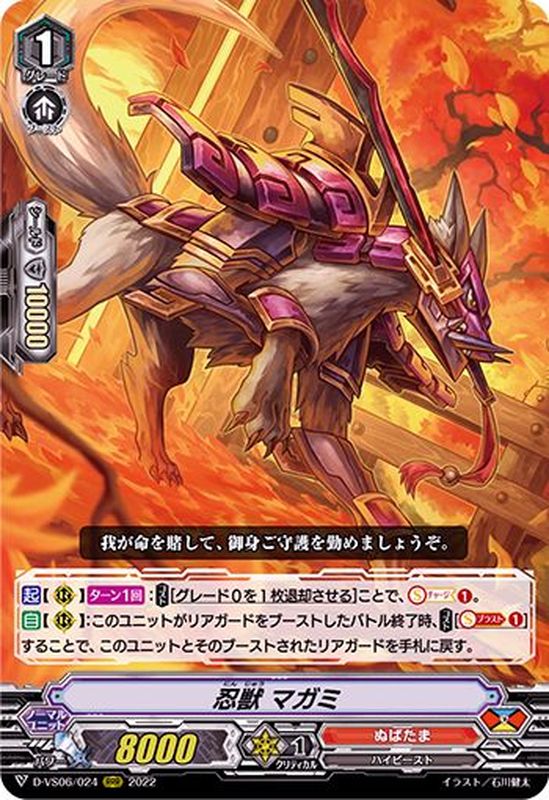 【起】【(R)】【ターン1回】:【コスト】[グレード0を1枚退却させる]ことで、【ソウルチャージ】(1)。【自】【(R)】:このユニットがリアガードをブーストしたバトル終了時、【コスト】[【ソウルブラスト】(1)]することで、このユニットとそのブーストされたリアガードを手札に戻す。