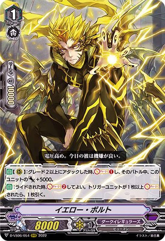 【自】【(R)】:グレード2以上にアタックした時、【ソウルチャージ】(1)し、そのバトル中、このユニットのパワー+5000。【自】:ライドされた時、【ソウルチャージ】(2)してよい。トリガーユニットが1枚以上【ソウルチャージ】されたら、1枚引く。