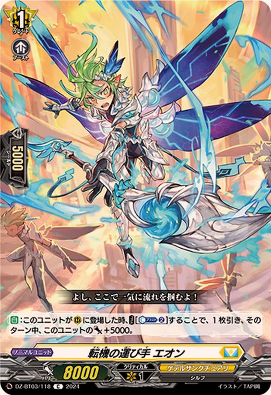 【自】:このユニットが(R)に登場した時、【コスト】[【カウンターブラスト】(2)]することで、1枚引き、そのターン中、このユニットのパワー+5000。