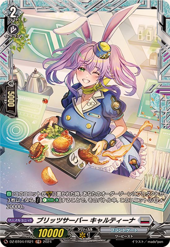 【自】:このユニットが(G)に置かれた時、あなたのオーダーゾーンにプロダクトが3枚以上なら、【コスト】[【エネルギーブラスト】(3)]することで、そのバトル中、このユニットのシールド+20000。