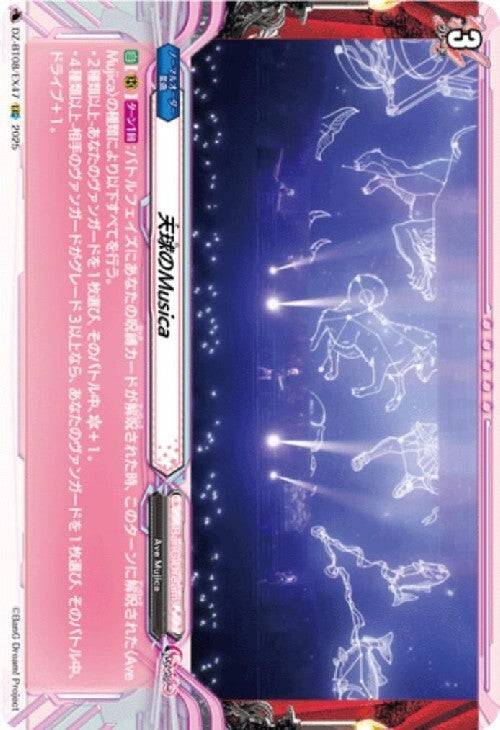 【自】【(R)】【ターン1回】:バトルフェイズにあなたの呪縛カードが解呪された時、このターンに解呪された〈Ave Mujica〉の種類により以下すべてを行う。