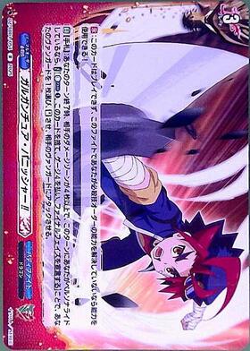 【自】【手札】:あなたのターン終了時、相手のダメージゾーンが4枚以上で、このターンにあなたがペルソナライドしているなら、【コスト】[【カウンターブラスト】(1),このカードを捨て、ゲージ4を払い、ファイナルフェイズを宣言する]ことで、あなたのヴァンガードを1枚選び、【スタンド】させ、相手のヴァンガードにアタックさせる。