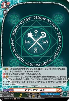 【永】【(V)/オーダーゾーン】:このカードは他の能力や効果の影響を受けず、あなたが《バディファイト》のみのカードを、ライドやコールや能力をプレイする際、そのカードが、〈マジックワールド〉か〈ジェネリック〉なら、ライドやコールでき、能力をプレイできる。