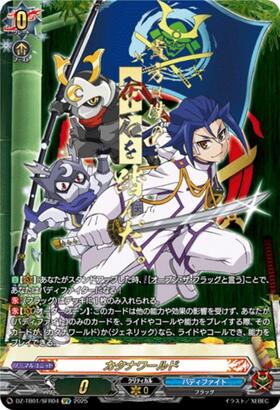 【永】【(V)/オーダーゾーン】:このカードは他の能力や効果の影響を受けず、あなたが《バディファイト》のみのカードを、ライドやコールや能力をプレイする際、そのカードが、〈カタナワールド〉か〈ジェネリック〉なら、ライドやコールでき、能力をプレイできる。