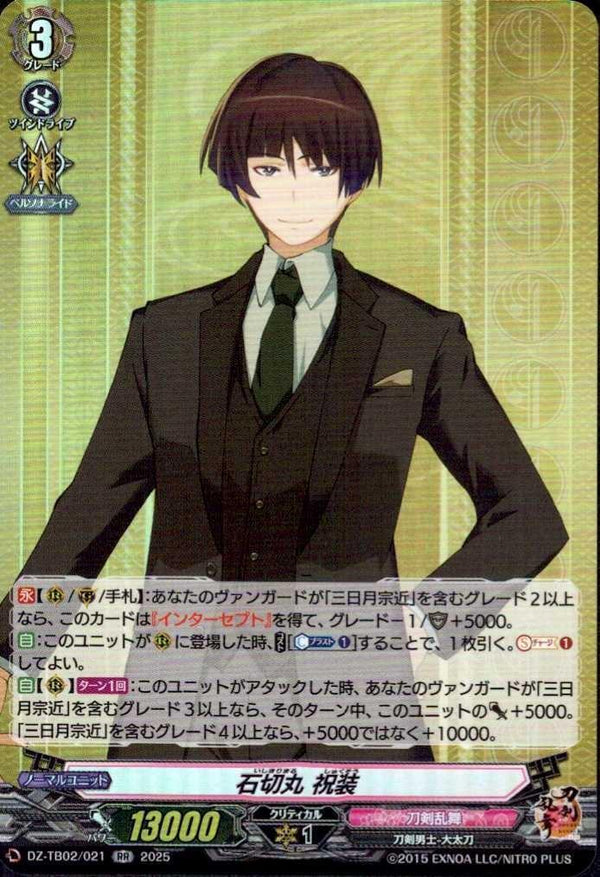 【永】【(R)/(G)/手札】:あなたのヴァンガードが「三日月宗近」を含むグレード2以上なら、このカードは『インターセプト』を得て、グレード-1/シールド+5000。