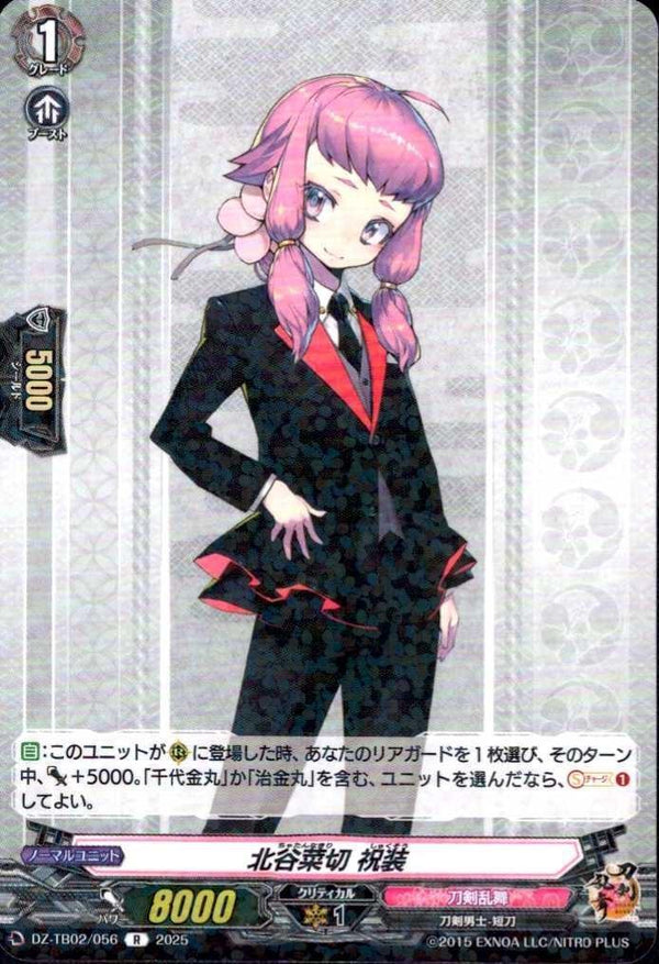 【自】:このユニットが(R)に登場した時、あなたのリアガードを1枚選び、そのターン中、パワー+5000。「千代金丸」か「治金丸」を含む、ユニットを選んだなら、【ソウルチャージ】(1)してよい。