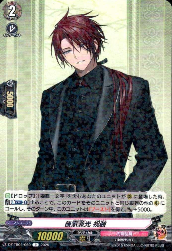 【自】【ドロップ】:「姫鶴一文字」を含むあなたのユニットが(R)に登場した時、【コスト】[【カウンターブラスト】(1)]することで、このカードをそのユニットと同じ縦列の他の(R)にコールし、そのターン中、このユニットは『ブースト』を得て、パワー+5000。
