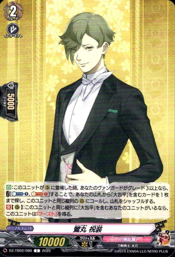 【自】:このユニットが(R)に登場した時、あなたのヴァンガードがグレード3以上なら、【コスト】[【カウンターブラスト】(1),【ソウルブラスト】(1)]することで、あなたの山札から「大包平」を含むカードを1枚まで探し、このユニットと同じ縦列の(R)にコールし、山札をシャッフルする。