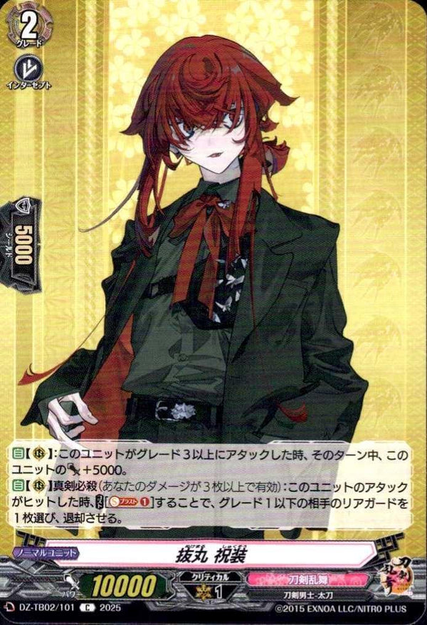 【自】【(R)】真剣必殺(あなたのダメージが3枚以上で有効):このユニットのアタックがヒットした時、【コスト】[【ソウルブラスト】(1)]することで、グレード1以下の相手のリアガードを1枚選び、退却させる。