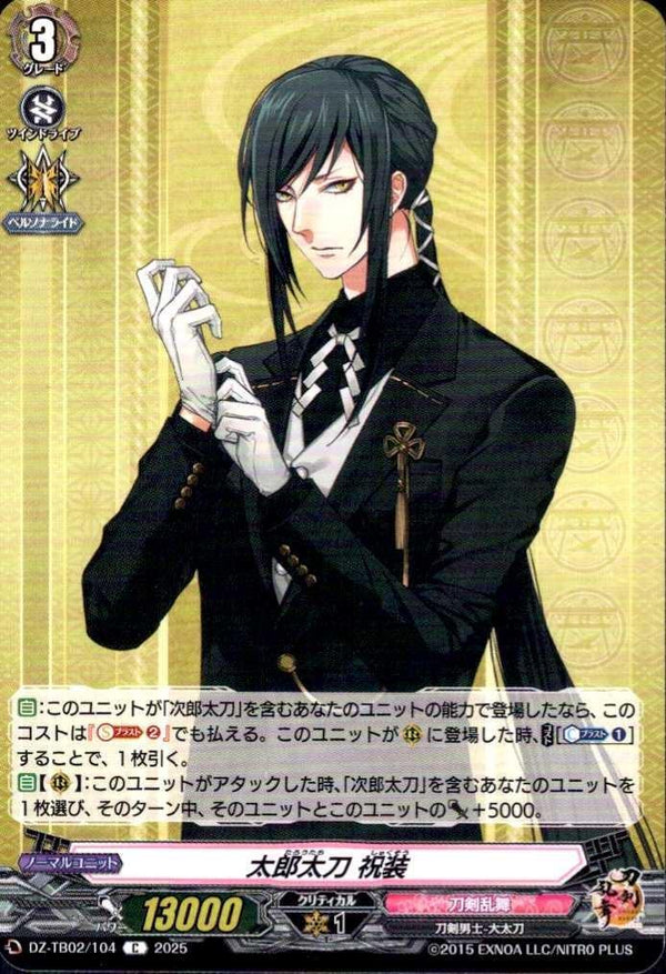 【自】:このユニットが「次郎太刀」を含むあなたのユニットの能力で登場したなら、このコストは『【ソウルブラスト】(2)』でも払える。このユニットが(R)に登場した時、【コスト】[【カウンターブラスト】(1)]することで、1枚引く。