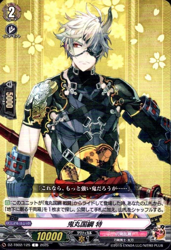 【自】:このユニットが「鬼丸国綱 戦闘」からライドして登場した時、あなたの山札から、「地下に眠る千両箱」を1枚まで探し、公開して手札に加え、山札をシャッフルする。